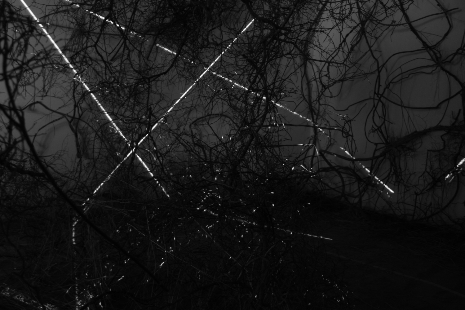 TANGLE, 2011. 16'H x 35'Wx35'W. Video projection onto Vines, Branches and Grasses.